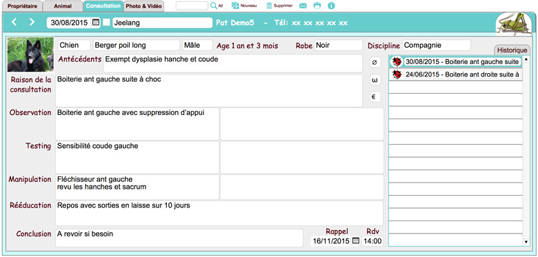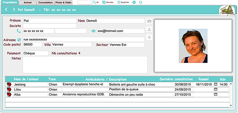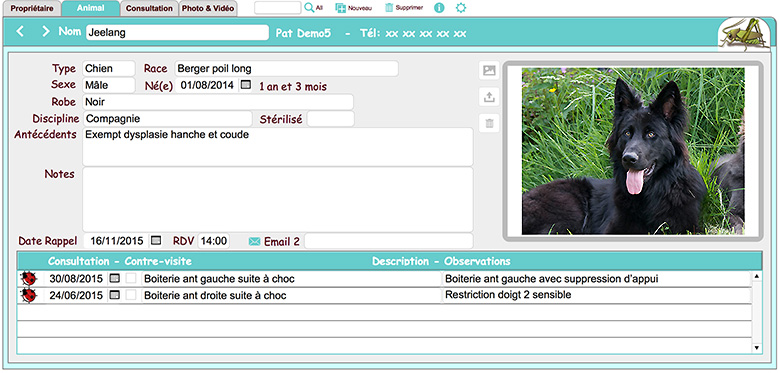 - Personnalisez vos fiches : client, animal, consultation,